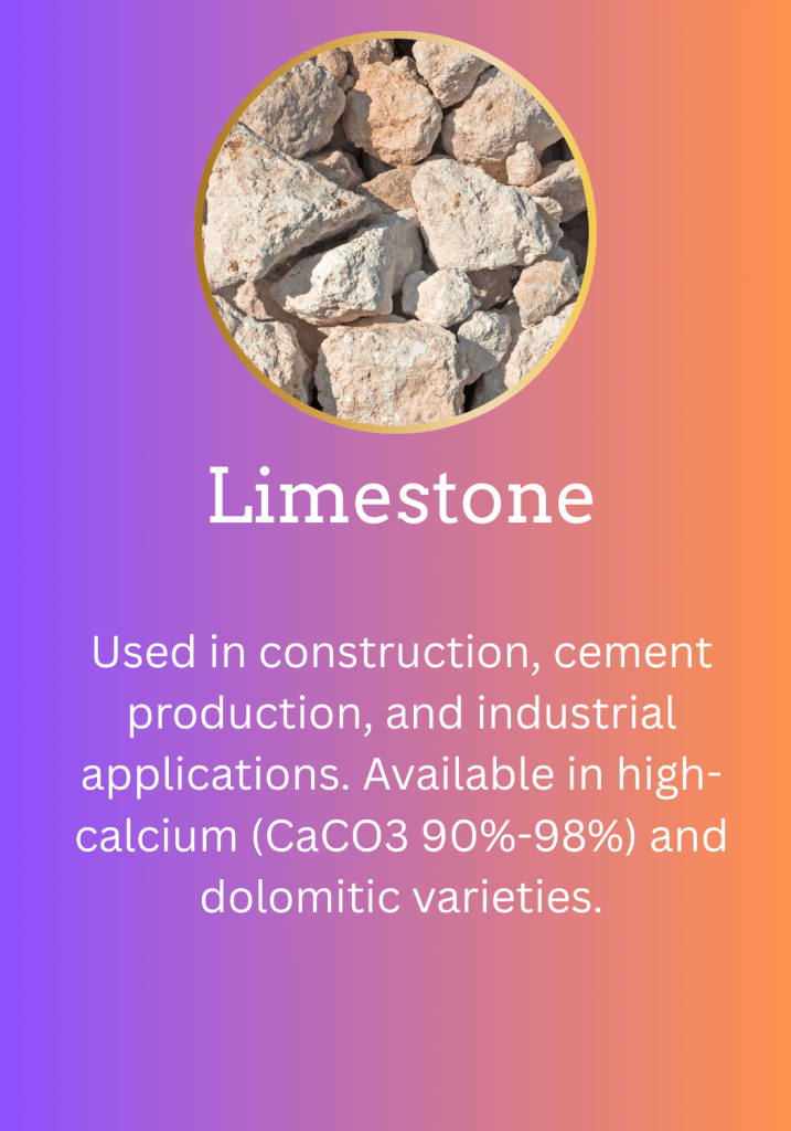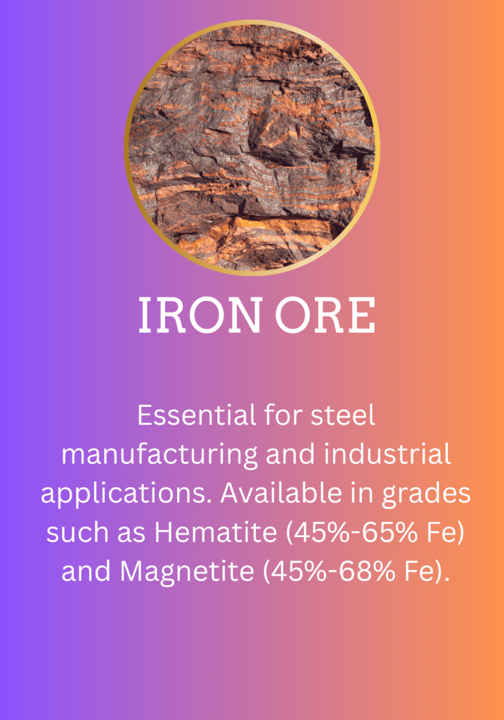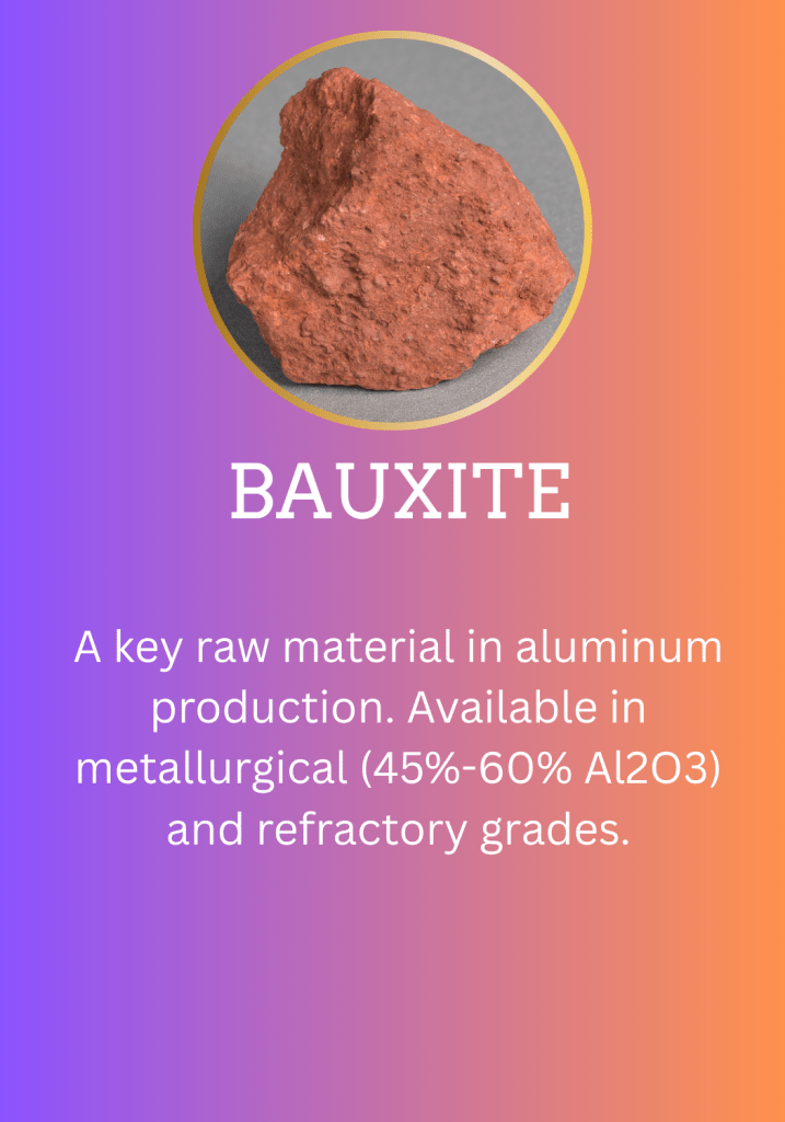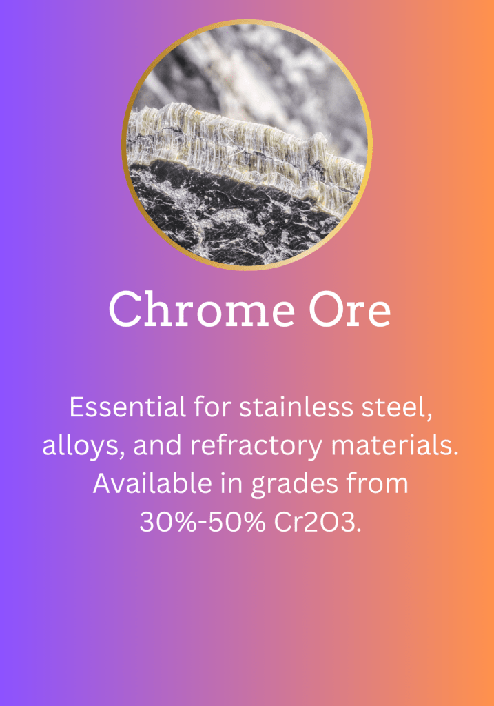 We cater to various industries, including construction, metallurgy, ceramics, and energy, by providing essential minerals such as iron ore, bauxite, limestone, quartz, silica sand, manganese, chrome, nickel, coal and more. Our efficient supply chain and adherence to international quality standards make us a preferred partner in the mineral trade.