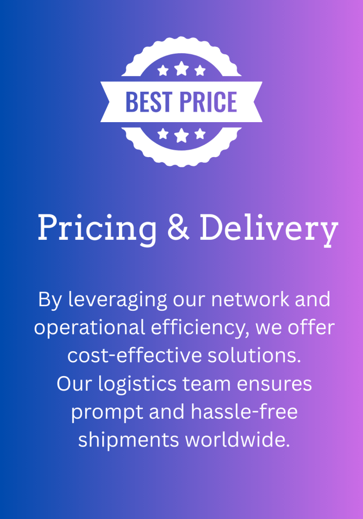 Explore new business opportunities with us and experience a seamless import-export process backed by reliability and excellence. Contact us today to learn more about our products, services, and how we can support your business.